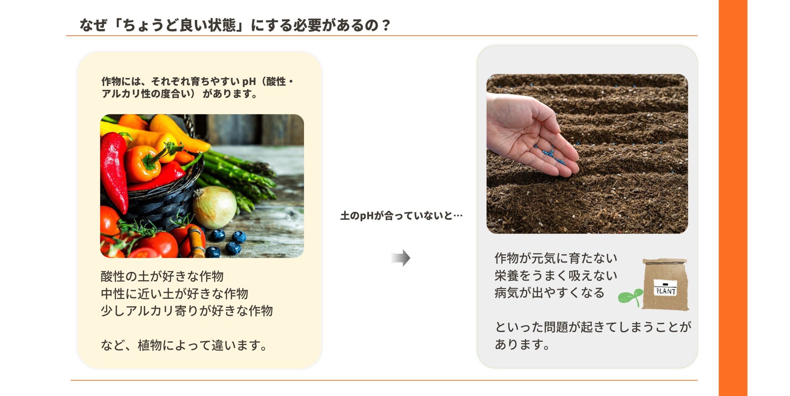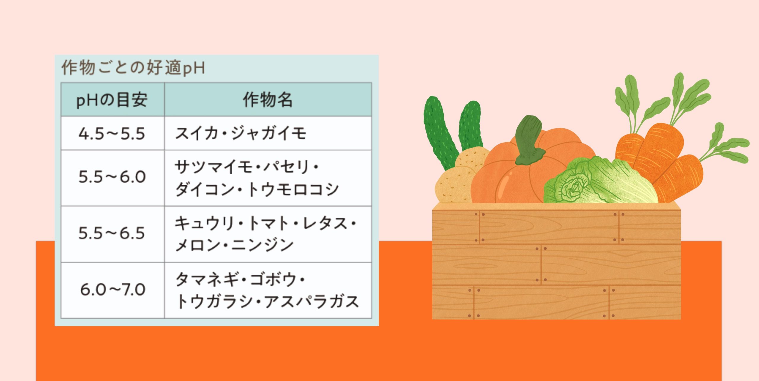 🍅 主な野菜と好むpHの目安 多くの野菜は pH6.0〜6.5 を好むと言われています。